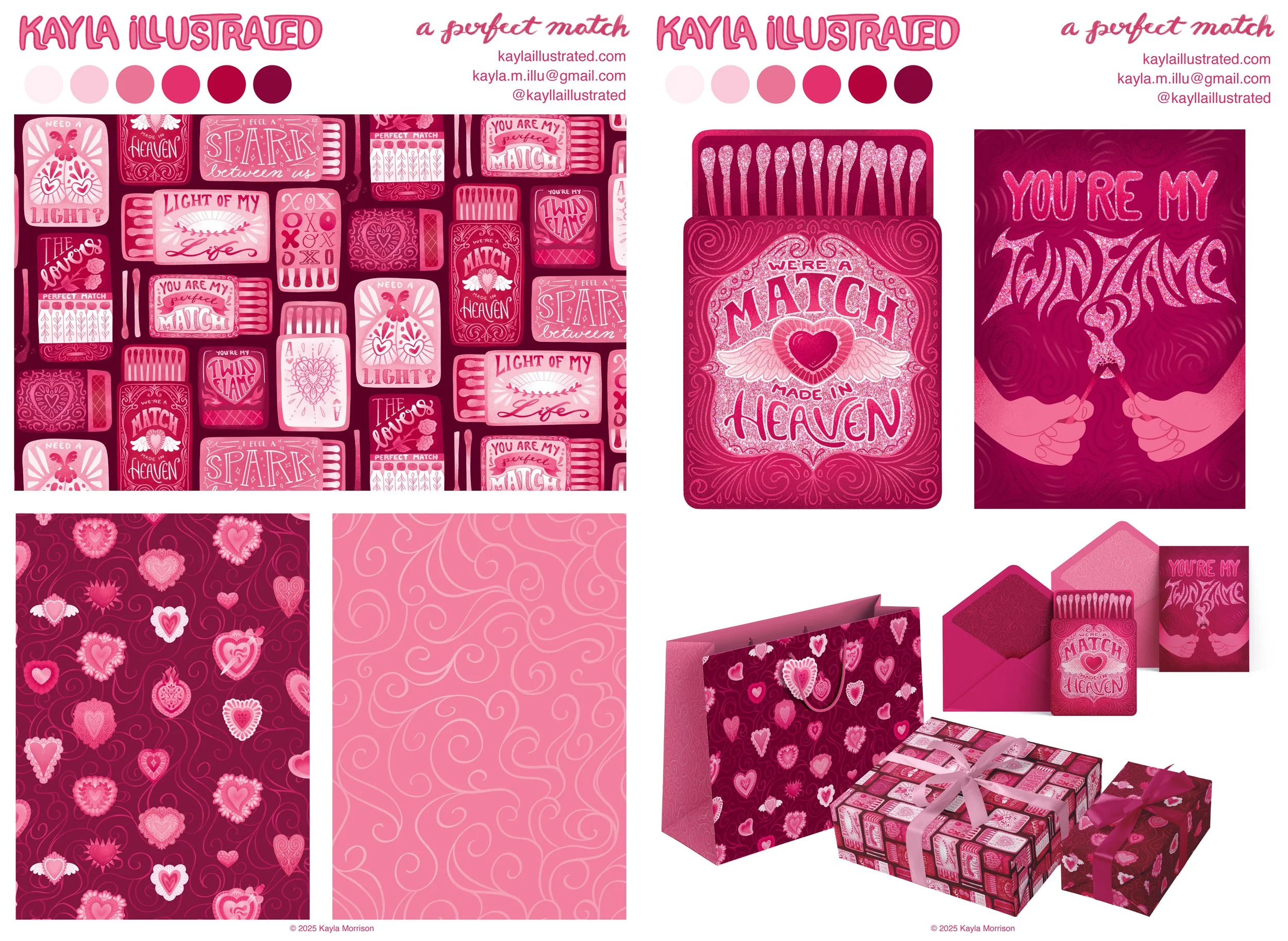 This playful Valentines collection is inspired by WGSN’s trend predictions for Valentines Day 2027. This project was created using Adobe Photoshop, Procreate, and Adobe Illustrator.